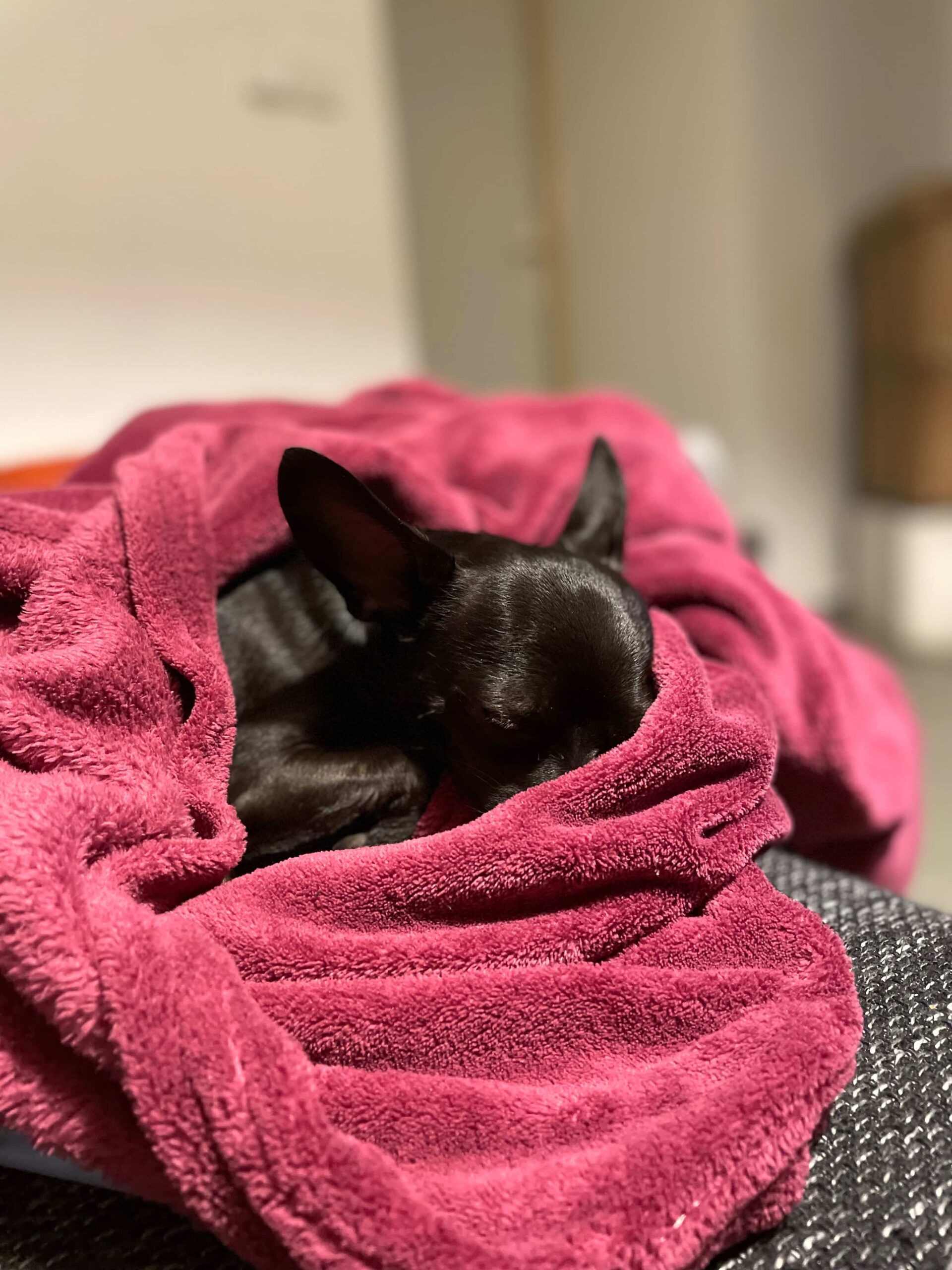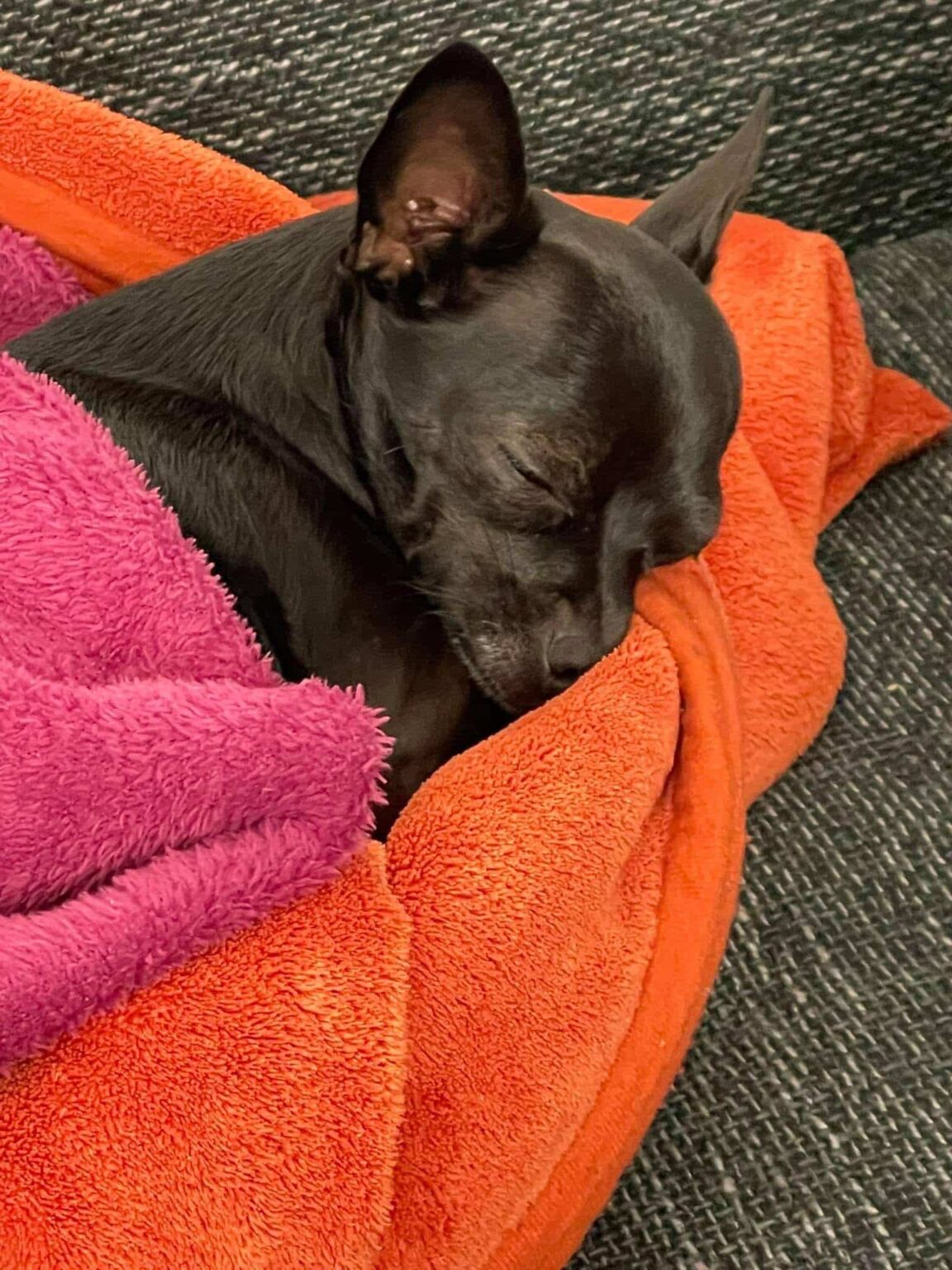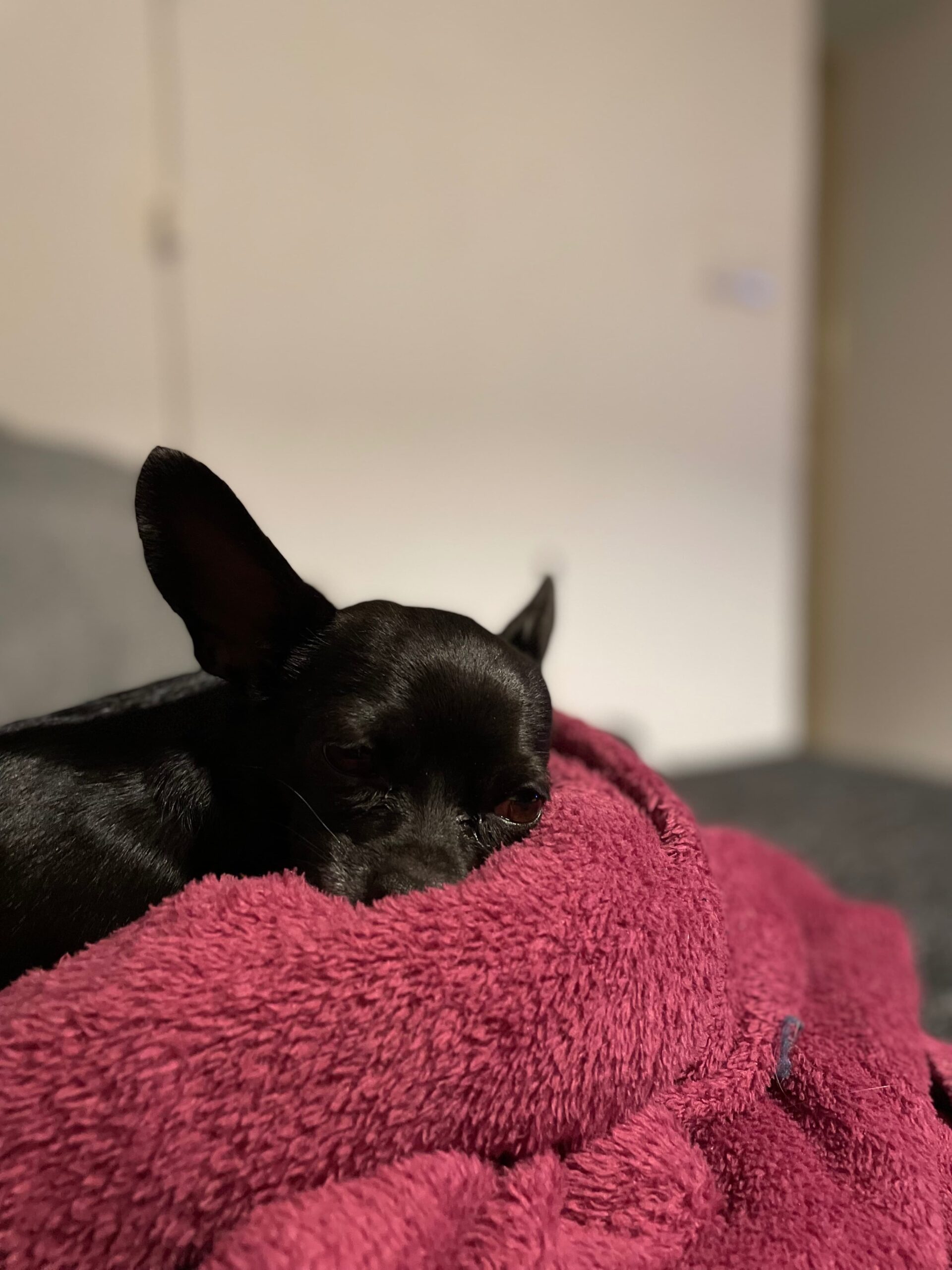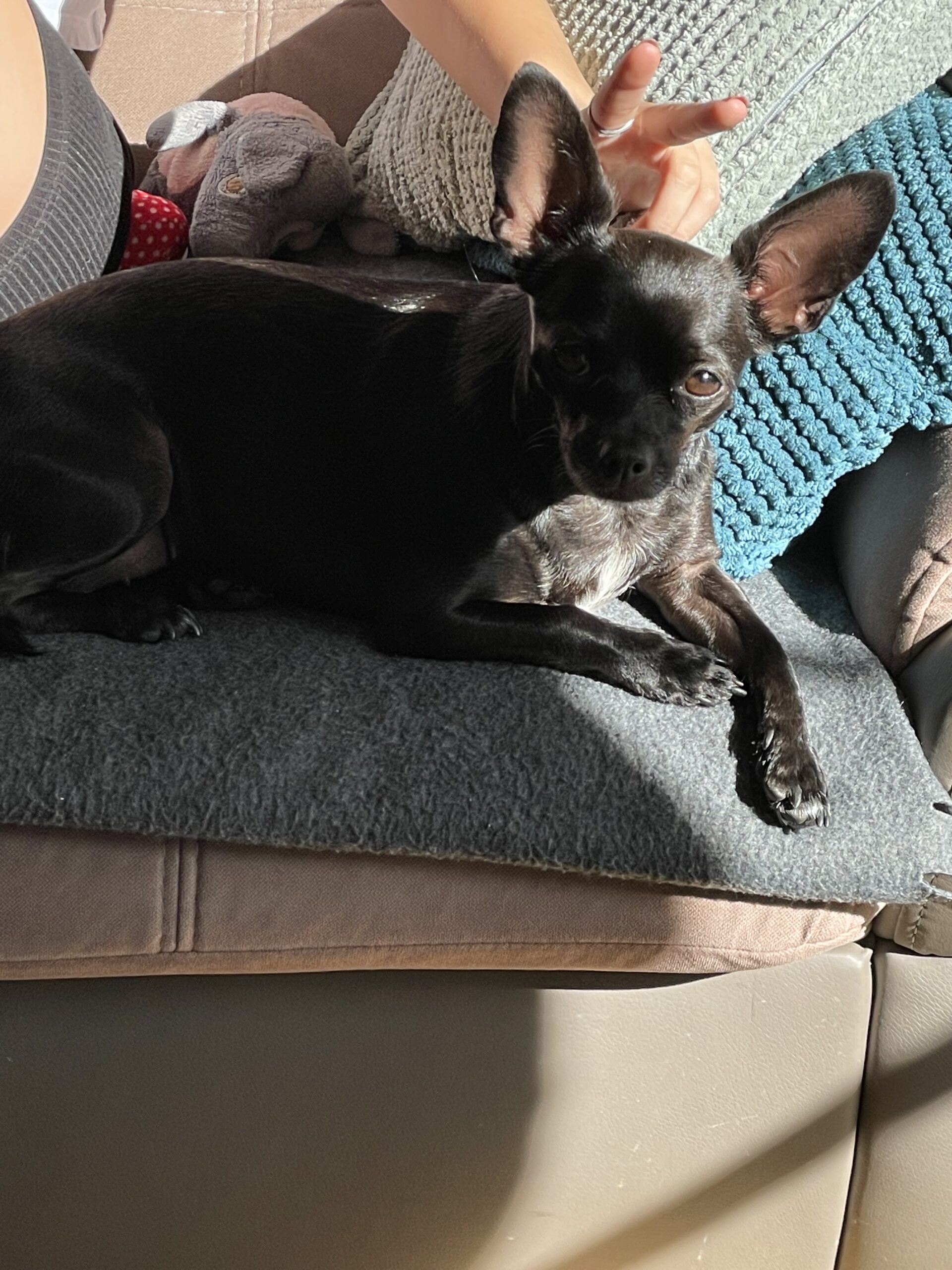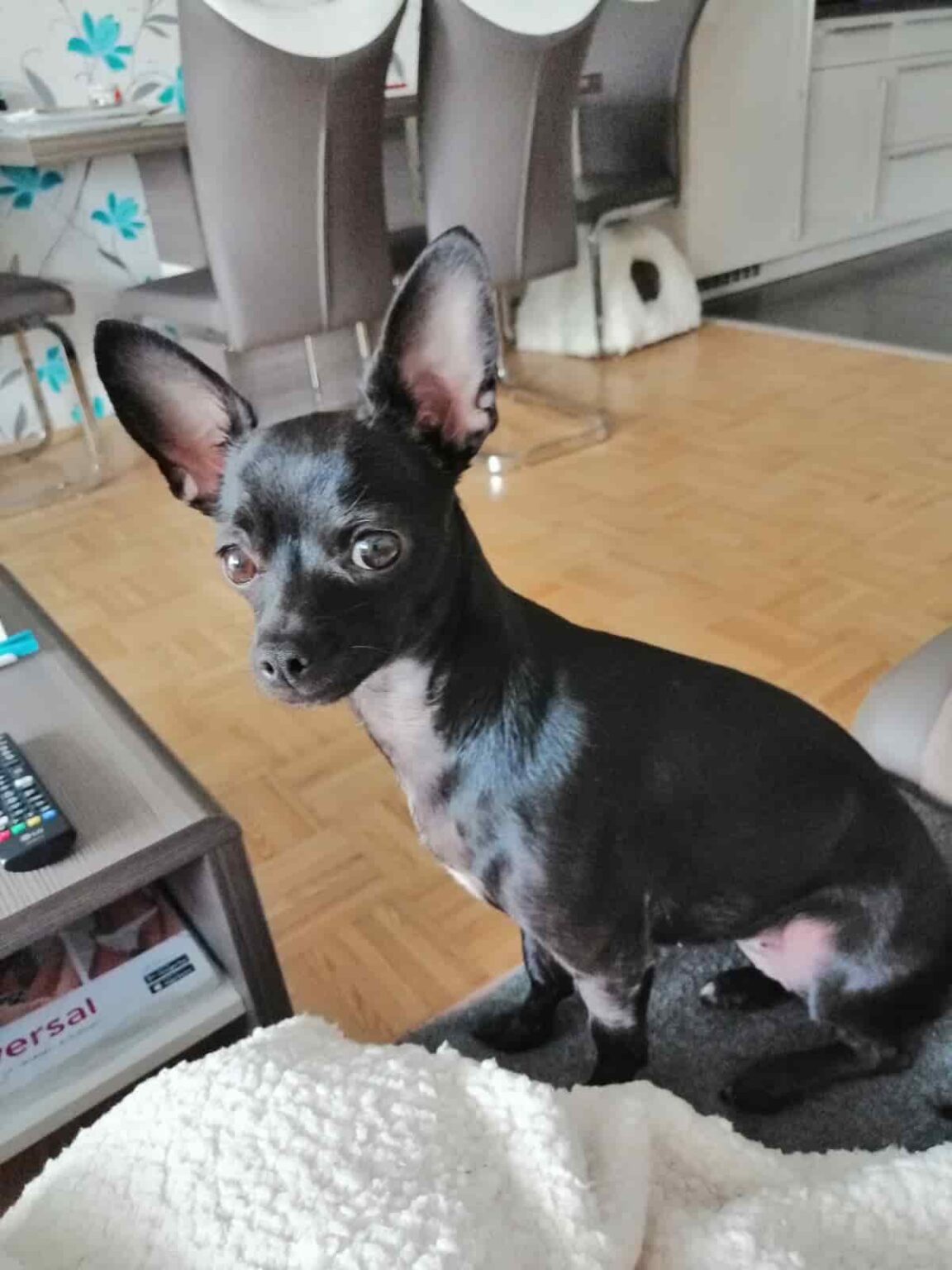 Dass ist Lotty. Ihr Name bedeutet „die Freie“. Lotty hat, wie ihr auf dem Bild erkennen könnt, ein schwarzes Fell. Sie liebt es zu spielen, zu kuscheln und auch rennen zu können. Sie ist 5 Jahre alt und ein herzhafter Chihuahua:)
